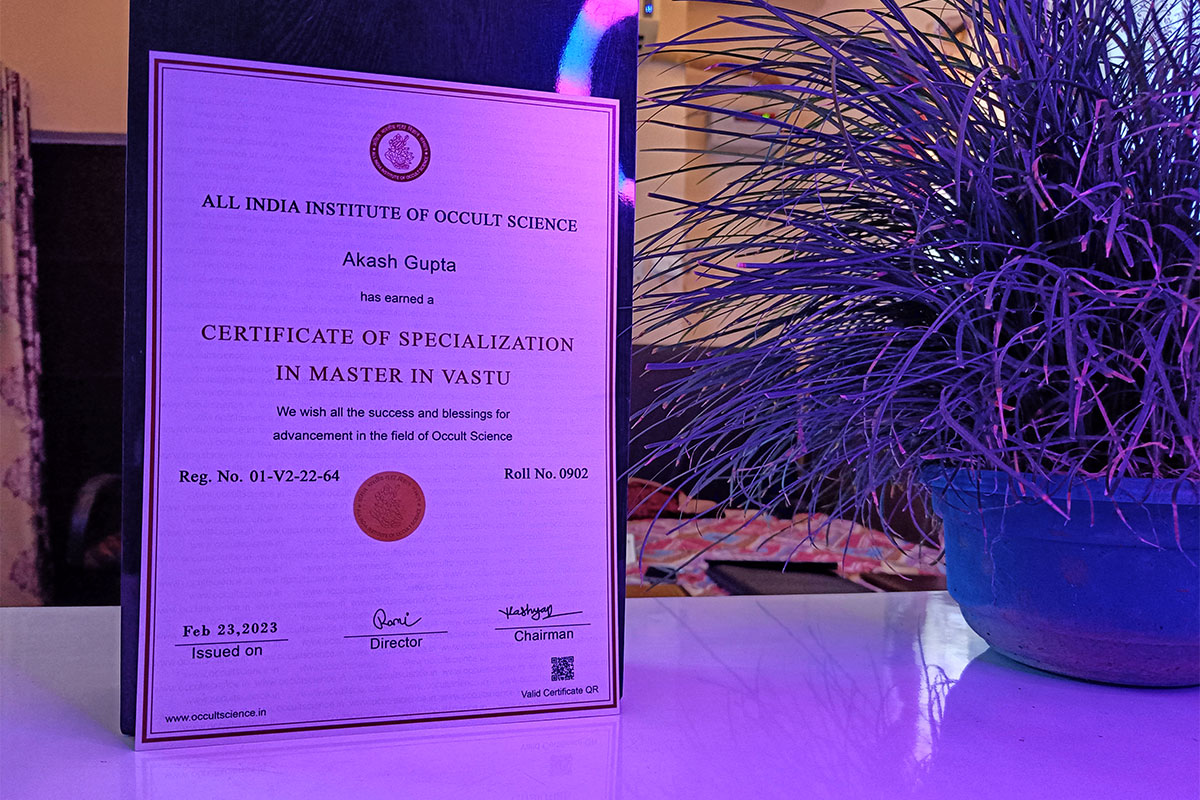 Er. Akkash Guptaa is a Civil Engineer & Renowned Vastu Consultant of Central and North India. He had a rich Experience of 23 Years, he started his career in 2001 as a certified professional and his curosity on occult sciences make him to become a expert in Vastu Shastra, Vedic Astrology, Tarot Cards, Numerology, Crystal Therapy, Usui Reiki, Yoga courses and Dowsing. He is a Certifed Reiki Grand Master Of Usui Reiki and Member Of Japan Reiki Assocation. He is a high-ranking scientist and are doing extensive study on this topic.